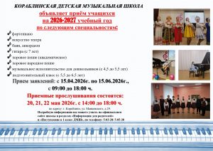 О приеме в МБУ ДО “Кораблинская ДМШ” на 2026 – 2027 учебный год